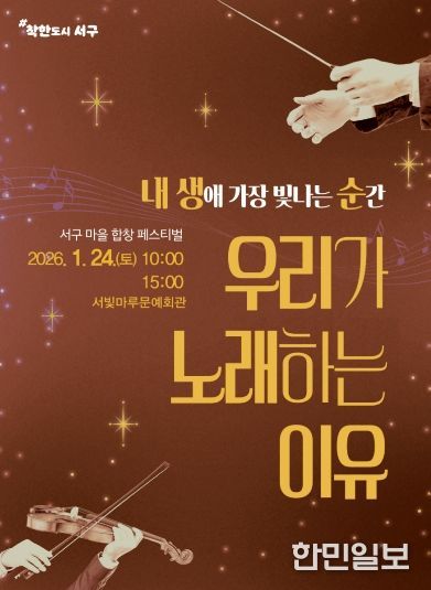 김이강 서구청장은 “주민 각자의 목소리가 어우러지며 마을이 하나 되는 힘을 만들어내고 있다”며 “앞으로도 마을마다 음악과 선율이 흐르는 풍요로운 생활문화가 자리 잡을 수 있도록 마을합창단 활동을 지속적으로 지원하겠다”고 말했다.
