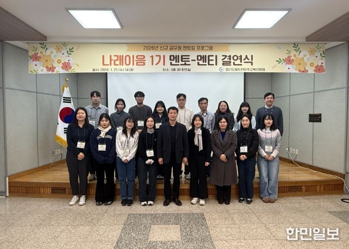 한민일보 서울포커스 임경복 기자 | 동두천양주교육지원청은 신규공무원의 조기 공직 적응을 지원하기 위해 1월 21일, 동두천양주교육지원청에서 ‘나래이음 1기 결연식’을 개최한다. ‘나래이음’은 동두천양주 신규공무원 대상 교육프로그램 중 멘토링 프로그램의 명칭으로, 연간 멘토링을 통해 직무 역량과 정서적 안정을 함께 지원하고 선후배 간 소통과 공감을 기반으로 한 조직문화 조성을 목적으로 운영된다.