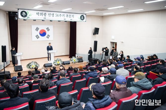 한민일보 서울포커스 김봉순 기자 | 구미시는 22일 성리학역사관 야은관과 금오산 박희광 선생 동상 앞에서 '애국지사 박희광 선생 제56주기 추모식'을 광복회 구미시지회(지회장 김영수) 주관으로 거행했다.