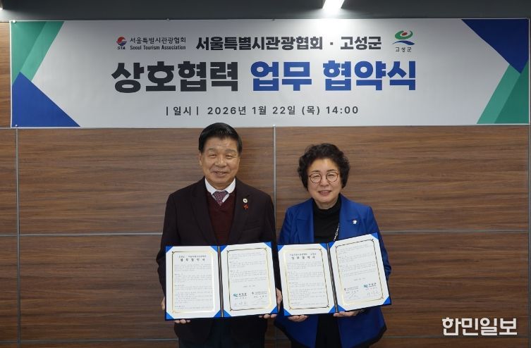 한민일보 서울포커스 김은금 기자 | 경남 고성군은 1월 22일 서울특별시관광협회 회의실에서 서울특별시관광협회(회장 조태숙)와 지역 관광 활성화 및 관광산업 발전을 위한 업무협약(MOU)을 체결했다고 밝혔다.
