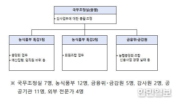 한민일보 서울포커스 임철현 기자 | 정부는 농협 관련 비위 근절과 투명성 강화를 위해 국무조정실, 농림축산식품부, 금융위·금감원 등이 참여하는'정부합동 특별감사반'을 구성하고, 1월26일부터 농협중앙회․농협재단 등에 대한 특별감사에 착수한다.