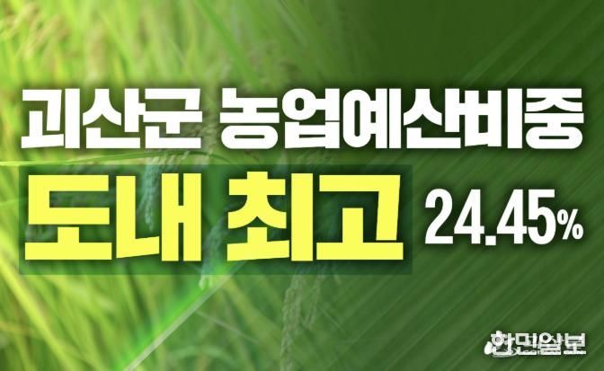 군이 23일 공개한 2026년 시·군별 예산 현황에 따르면 괴산군의 본예산 대비 농업 부문 예산 비율은 24.45%로 충북 11개 시·군 가운데 1위에 올랐다. 도 전체 평균(11.86%)과 비교해도 두 배를 훌쩍 넘는 지원이다.