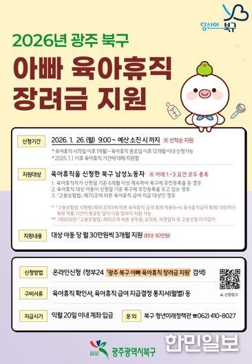25일 북구에 따르면 오는 26일부터 ‘2026년 아빠 육아휴직 장려금’ 신청이 시작된다.