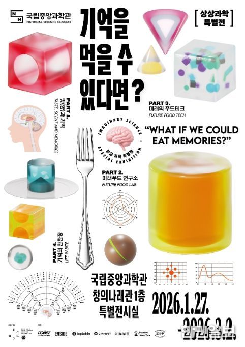한민일보 서울포커스 기자 | 미래의 꿈을 만드는 과학 기술 문화 이음터(플랫폼) 과학기술정보통신부 국립중앙과학관은 겨울방학을 맞아 과학적 상상력이 미학적 체험으로 실현되는 과정을 그린 상상 과학 특별전 '기억을 먹을 수 있다면?(What If We Could Eat Memories?)'을 2026년 1월 27일부터 3월 2일까지 창의 나래 관 1층 기획전시실에서 개최한다고 밝혔다.
