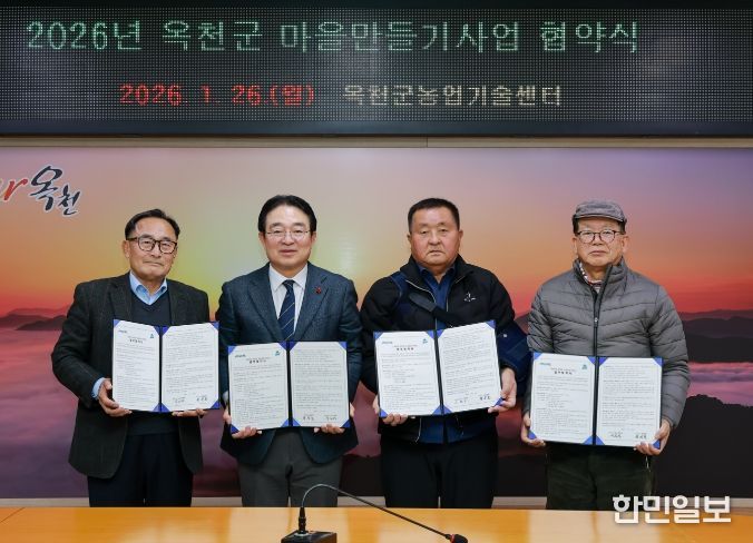 한민일보 서울포커스 김다남 기자 | 옥천군은 1월 26일 오후 2시, 옥천군농업기술센터 2층 소회의실에서 ‘2026년 옥천군 마을만들기사업 협약식’을 열고 동이면 금암2리, 안남면 도덕1리, 청산면 한곡리 등 3개 마을과 협약을 체결했다.