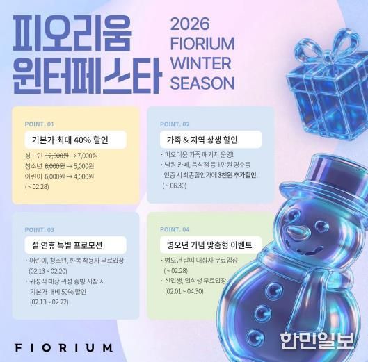 피오리움 관계자는 “새해와 설 명절을 맞아 시민과 관광객들이 부담 없이 문화예술을 누릴 수 있도록 윈터페스타를 비롯한 다양한 혜택을 마련했다”라며, “프로모션별 대상과 필수 지참 증빙서류가 상이하니 방문 전 공식 SNS 및 전화 문의를 통해 혜택을 놓치지 마시길 바란다”고 전했다.