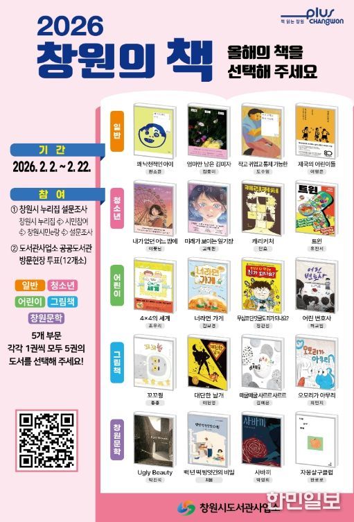 한민일보 서울포커스 김서윤 기자 | 창원특례시 도서관사업소는 2월 2일부터 2월 22일까지 '2026 창원의 책' 후보도서 20권에 대한 시민선호도 조사를 실시한다고 밝혔다.