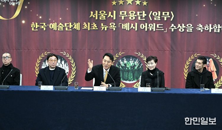한민일보 서울포커스 국용호 기자 | 오세훈 서울시장은 문화예술계 인사들과 29일 12시, 서울시청 간담회장1에서 종묘제례악을 재해석한 ‘일무’로 2026년 ‘베시 어워드’에서 최우수 안무가·창작자상을 수상한 서울시무용단을 만나 축하 인사를 전했다.