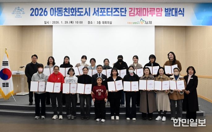 한민일보 서울포커스 박용남 기자 | 김제시는 2026년 제3대 아동친화도시 서포터즈단 ‘김제마루맘’ 발대식을 29일 오전 개최했다고 밝혔다. 이날 행사는 정성주 시장과 선발된 김제마루맘 단원, 관계자 등 25여 명이 참석했다.