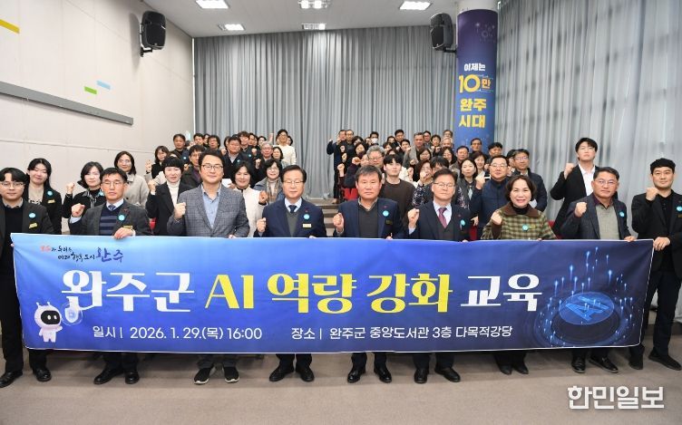 한민일보 서울포커스 박용남 기자 | 완주군이 정부의 ‘인공지능(AI) 3대 강국 도약’ 정책과 연계해 인공지능 시대에 선제적으로 대응하기 위한 에이아이(AI) 역량 강화 교육을 1월 20일, 29일, 30일에 걸쳐 성공적으로 마쳤다.