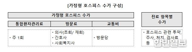 구체적으로, 의사·간호사·사회복지사의 환자 가정 방문 및 임종 돌봄, 전화상담 등 상시적 환자 관리서비스에 대한 수가를 인상하여 가정형 호스피스 전반에 대한 보상을 강화한다.