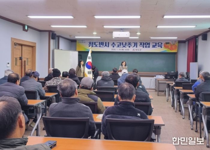 한민일보 서울포커스 임경복 기자 | 청도군은 29일 농업기술센터 농업교육관에서 청도반시 재배 농가의 작업 환경 개선과 안정적인 과실 생산을 위해 현장 기술 지원단 44명을 대상으로 ‘수고 낮추기 재배 기술 교육’을 실시했다고 밝혔다.