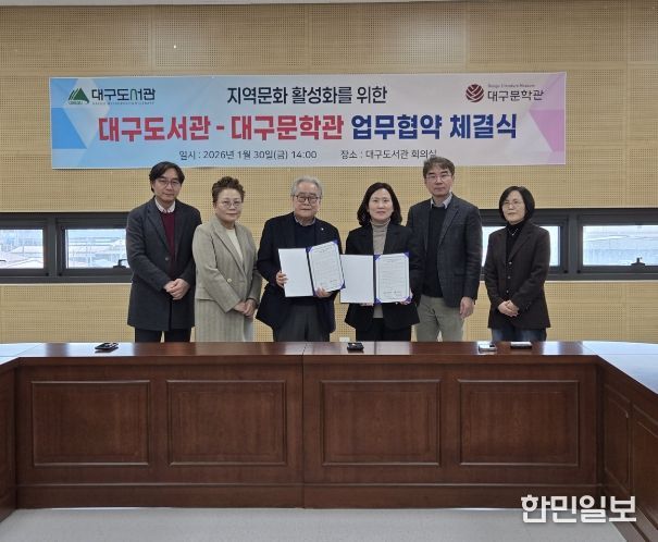 한민일보 서울포커스 임경복 기자 | 대구도서관과 대구문학관은 시민을 위한 독서문화 분야 협력을 강화하고 상호 발전을 도모하기 위해 1월 30일 오후 2시, 대구도서관 회의실에서 업무협약을 체결했다.