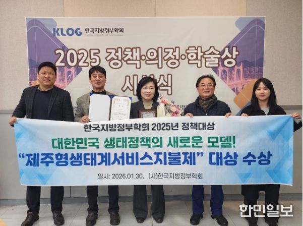 한민일보 서울포커스 임경복 기자 | 제주특별자치도의 ‘제주형 생태계서비스지불제’가 한국지방정부학회 주관 ‘2025년 정책대상’에서 최고상인 대상을 받는다. 시상식은 30일 부산 동아대학교에서 열린다.