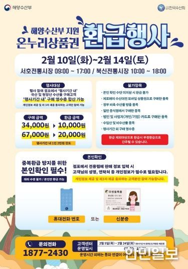 한민일보 서울포커스 김서윤 기자 | 통영시는 오는 10일부터 14일까지 5일간 서호전통시장과 북신전통시장 두 곳에서 국내산 수산물을 구매하는 소비자를 대상으로 온누리상품권 환급행사를 실시한다.
