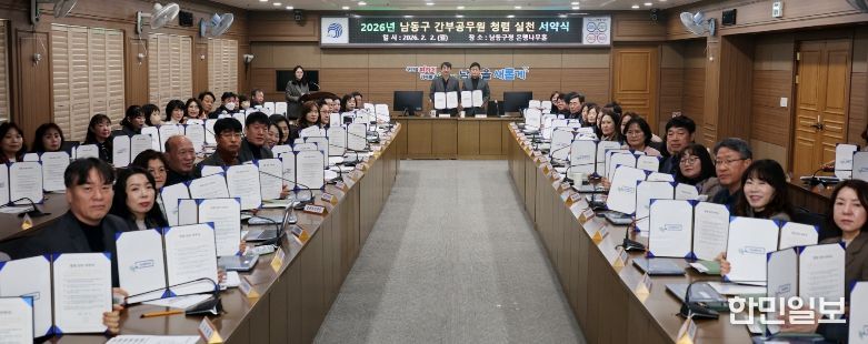 한민일보 서울포커스 김성혜 기자 | 인천시 남동구는 2026년 청렴정책추진단 회의 및 간부 공무원 청렴 서약식을 개최하고, 기관장과 간부 공무원을 중심으로 책임 있는 청렴 실천 의지를 다졌다고 3일 전했다.