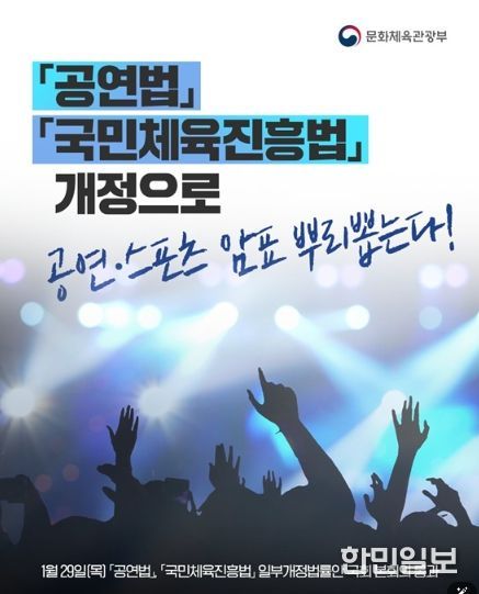 한민일보 서울포커스 임경복 기자 | 공연·스포츠 암표를 근절하고 공정한 관람 질서를 확립하기 위한 「공연법」, 「국민체육진흥법」 일부개정법률안이 1월 29일(목) 국회 본회의를 통과했습니다.