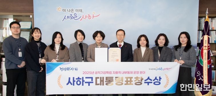 한민일보 서울포커스 임광현 기자 | 부산 사하구는 행정안전부 주관 2025년 공직기강 확립 유공 포상 ‘자율적 내부통제 운영 분야’에서 전국 지방자치단체 가운데 1위의 성적을 거두며 대통령 표창을 수상했다고 밝혔다. 부산지역 자치구 중에서는 사하구가 유일하다.