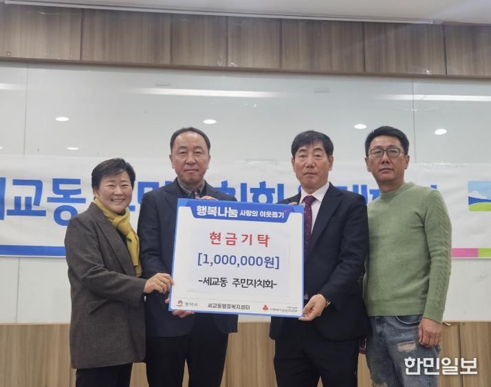 한민일보 서울포커스 황준형 기자 | 평택시 세교동 주민자치회는 지난 4일, 세교동 행정복지센터에서 설 명절을 맞이하여 이웃돕기 성금 100만 원을 기부했다.