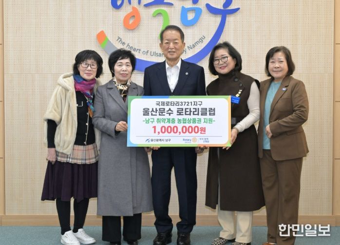 한민일보 서울포커스 기자 | 울산 남구의 나눔 문화를 선도하는 울산문수 로타리클럽(회장 권대순)은 5일 남구청을 방문해 관내 저소득 취약계층을 위한 100만 원 상당의 농협하나로상품권을 전달했다.