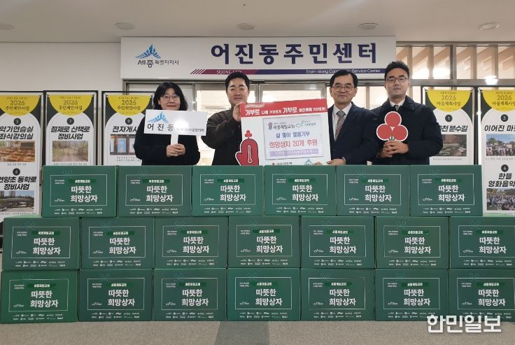 한민일보 서울포커스 김윤이 기자 | 세종특별자치시 어진동지역사회보장협의체(공동위원장 신영호·강영식)가 6일 세종제일교회(담임목사 임충은)로부터 희망상자 20개를 기탁 받았다.