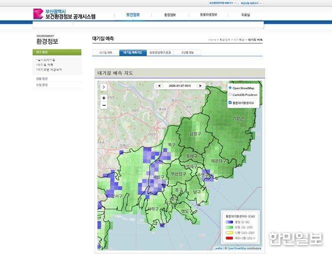 한민일보 서울포커스 임광현 기자 | 부산시 보건환경연구원은 시민 생활권의 대기질 상태를 쉽고 직관적으로 이해할 수 있도록 '지역별 상세 대기질 예측지도 서비스'를 운영한다고 밝혔다.