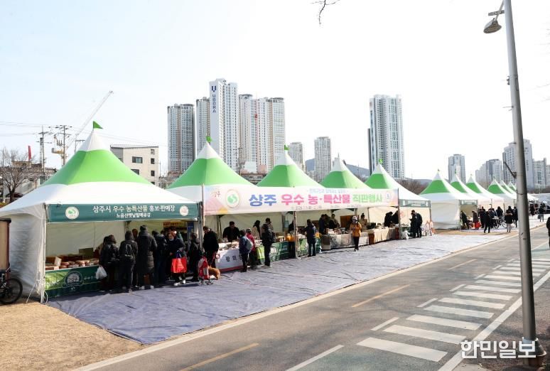 한민일보 서울포커스 김봉순 기자 | 상주시와 재부상주향우회가 함께 추진한 2026년 설맞이 상주 농특산품 직거래장터가 2월 6일부터 7일까지 이틀간 자매결연 도시 부산 연제구 온천천 시민공원에서 열렸다.