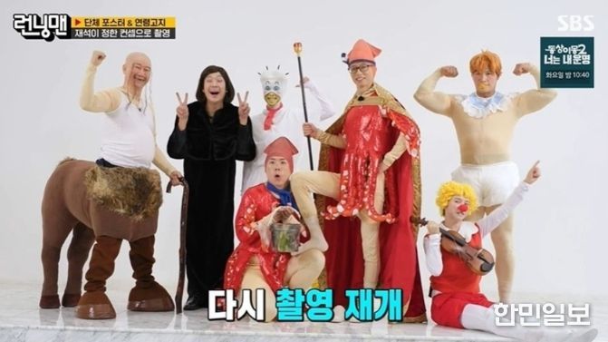 이날 방송된 ‘런닝맨’은 지난주 ‘연령고지 생존 서바이벌’의 결과가 발표되며 포스터와 연령고지 촬영 모습이 그려져 눈길을 끌었다. 시그니처 레이스였던 만큼 멤버들 간의 치열한 경쟁으로 재미를 더했는데 유재석이 최종 우승자가 되며 멤버별 ‘분장 희비’가 엇갈렸다. 첫 공식 포스터를 찍게 된 지예은은 ‘뼈’를 연상시키는 또치 분장으로 웃음을 자아냈고, 지석진은 반인반수 둘리 할아버지로 ‘씬스틸러’ 역할을 톡톡히 했다. 김종국은 ‘근육 희동이’, 송지효는 ‘도우너’로 분했다.