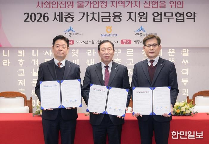한민일보 서울포커스 김윤이 기자 | 세종특별자치시가 9일 시청에서 농협은행, 세종신용보증재단과 ‘세종 가치 금융’ 소상공인 금융지원 업무협약을 체결했다.