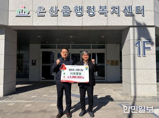 한민일보 서울포커스 기자 | ㈜씨엠원이 설명절을 앞두고 9일 울주군 온산읍 행정복지센터를 방문해 지역 취약계층을 위한 성금 300만원을 기부했다.