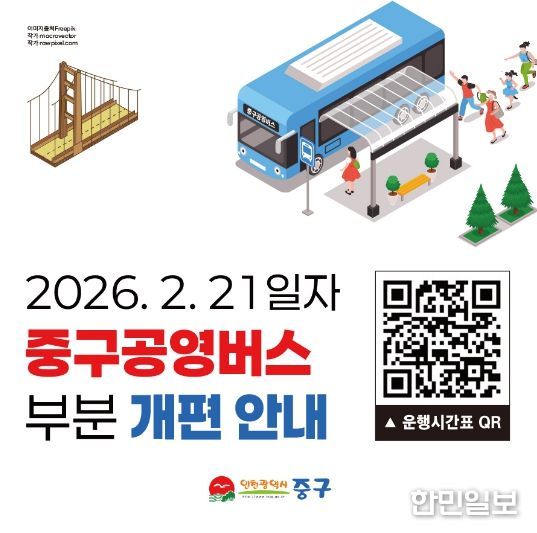 한민일보 서울포커스 김다남 기자 | 인천시 중구는 청라하늘대교 개통 등 변화하는 영종국제도시 교통 환경에 발맞춰 ‘중구 공영버스’ 노선을 부분 개편한다고 9일 밝혔다.