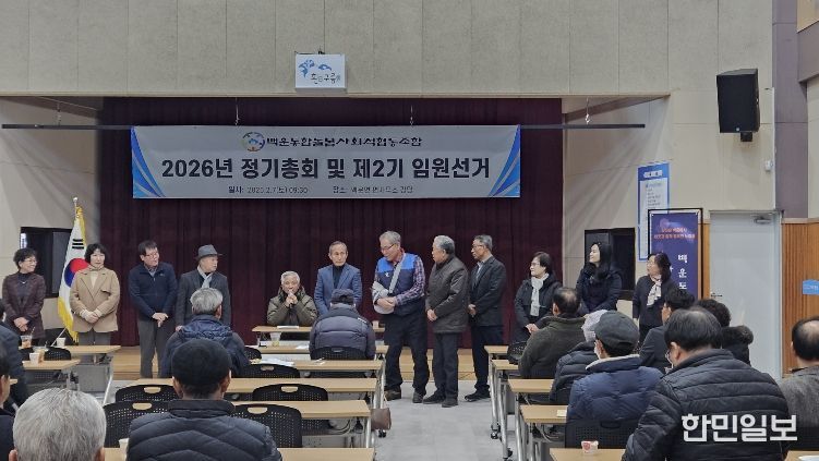 한민일보 서울포커스 박용남 기자 | 진안군 백운면 백운통합돌봄사회적협동조합(이사장 이남근)은 지난 2월 7일 백운면 행정복지센터 강당에서 조합원과 내빈 등 100여 명이 참석한 가운데 2026년 정기총회와 제2기 임원 선거를 진행했다.