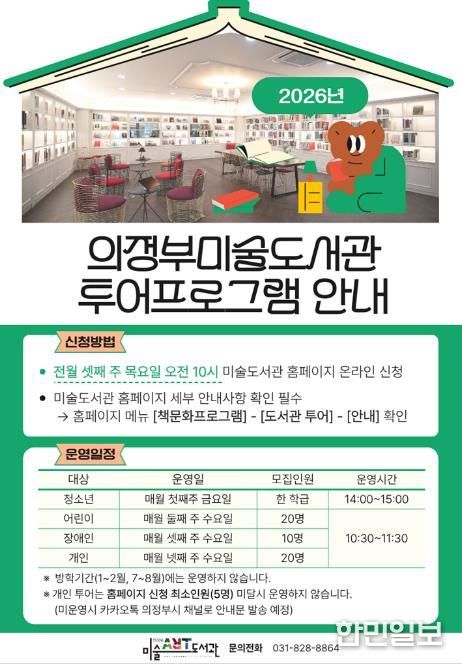 한민일보 서울포커스 심기옥 기자 | 의정부시는 미술 특화 도서관으로서의 가치와 정체성을 시민과 공유하고 소통하기 위해 의정부미술도서관 투어 프로그램을 운영한다.