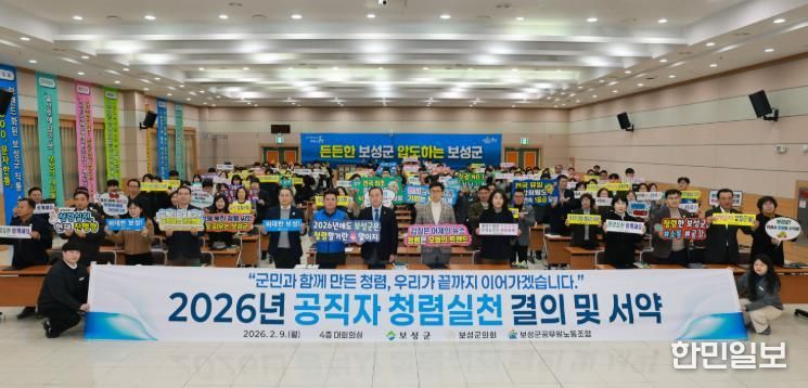 한민일보 서울포커스 박용남 기자 | 보성군은 지난 9일 보성군청 대회의실에서 보성군, 보성군의회, 보성군공무원노동조합이 공동 참여한 ‘2026년 반부패·청렴 실천 결의 및 서약식’을 개최했다고 밝혔다.