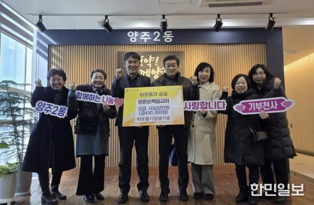 백기철 양주2동장은 “어려운 이웃을 먼저 생각하며 나눔을 실천해주신 동문순복음교회에 깊은 감사를 드린다”며 “기탁해주신 성금은 도움이 꼭 필요한 이웃들에게 의미 있게 전달하겠다”고 말했다.