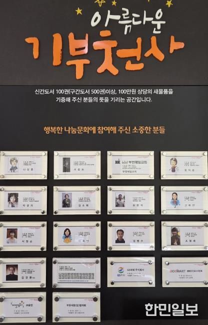‘아름다운 기부천사’ 게시판은 상동도서관 1층 로비에 마련돼 시민 누구나 쉽게 볼 수 있도록 조성돼 있다. 특히, 책을 통한 나눔의 가치를 전하고 자발적인 기부 문화를 확산하는 상징적 공간으로 자리매김하고 있다.