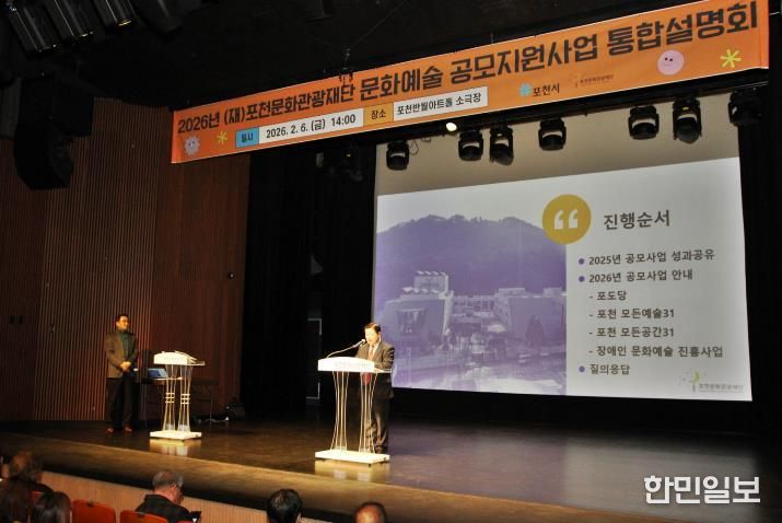 한민일보 서울포커스 심기옥 기자 | 포천문화관광재단은 지난 6일 포천반월아트홀 소극장에서 ‘2026년 문화예술 공모지원사업 통합설명회’를 개최했다.