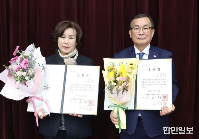 한민일보 서울포커스 김용택 기자 | 전주시의회 최주만 부의장과 박혜숙 문화경제위원장이 10일 전북특별자치도청에서 열린 민주평화통일자문회의 의장표창 전수식에서 의장상을 수상했다.