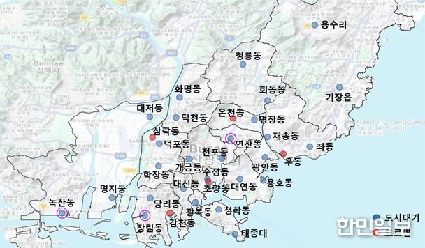 연구원은 대기질 모니터링 및 개선을 위해 부산 시내에 대기환경 측정소 32개(도시대기 27개, 도로변대기 5개)를 운영하고 있으며, 이번 조사에서 대기환경기준 6개 항목(미세먼지, 초미세먼지, 오존, 아황산가스, 일산화탄소, 이산화질소)을 측정했다.