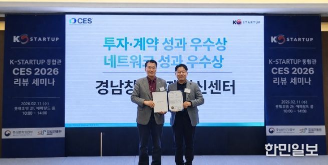 한민일보 서울포커스 임철현 기자 | 경상남도는 CES 2026에 참가한 경남창조경제혁신센터가 중소벤처기업부와 창업진흥원에서 주관하는 ‘K-스타트업 통합관’에서 운영 성과를 인정받아 ‘우수 참여기관’으로 선정됐다고 밝혔다.