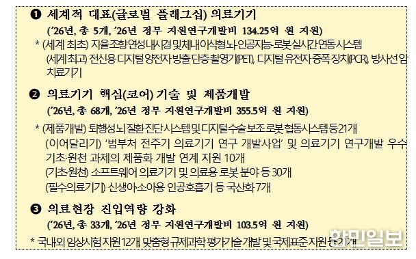 또한, 정부는 관계부처 합동으로 의료기기 분야 산·학·연·병 연구자 대상의 ‘2026년도 범부처 첨단 의료기기 연구 개발사업 신규 지원 재상 과제 사업설명회’를 2월 13일 10시부터 13시까지 엘타워 그레이스 Ⅰ홀 (서울 서초구)에서 개최한다.