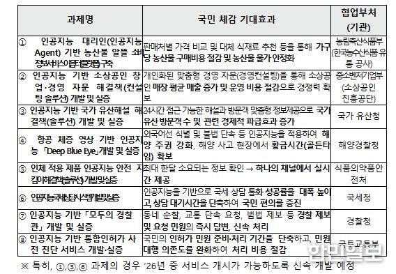 한민일보 서울포커스 기자 | 과학기술정보통신부는 '인공지능 민생 10대 과제(프로젝트)'를 본격 추진하기 위해, 과제(프로젝트) 중 8개 과제의 사업자 선정을 위한 공모를 2월 11일부터 개시한다고 밝혔다.