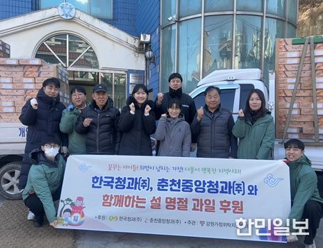 한민일보 서울포커스 곽중희 기자 | 한국청과(주)와 춘천중앙청과(주)(대표이사 박상헌)는 다가오는 설 명절을 맞아 강원특별자치도 내 위탁가정이 보다 따뜻하고 풍성한 명절을 보내길 바란다며, 2월 9일 강원가정위탁지원센터에 과일 400박스(약 2,000만 원 상당)를 후원했다.