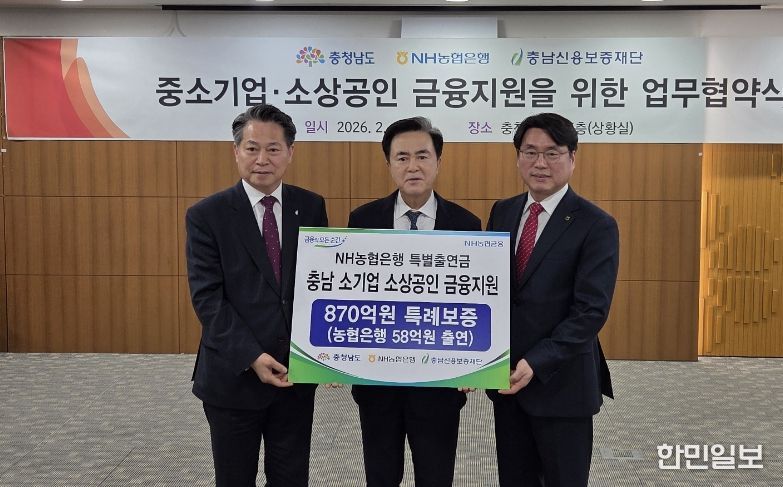 한민일보 서울포커스 박덕환 기자 | 충남신용보증재단은 충남경제 활력 제고와 지역 중소기업·소상공인의 경영안정 지원을 위해 11일 충남도청에서 충청남도, NH농협은행과 '중소기업·소상공인 금융지원을 위한 특별출연 업무협약'을 체결했다고 밝혔다.