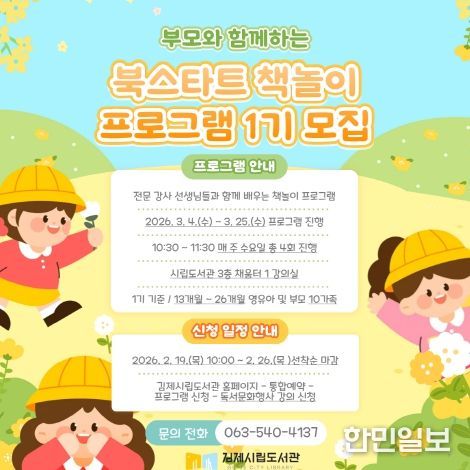 한민일보 서울포커스 박용남 기자 | 김제시립도서관은 2026년을 맞아 영·유아의 책과 첫 만남을 돕고, 부모와 아이가 함께 즐길 수 있는 독서문화를 조성하기 위해 ‘부모와 함께하는 북스타트 책놀이 프로그램 1기’를 진행한다고 밝혔다.