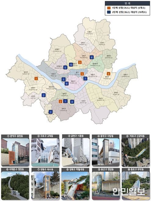고지대 이동약자 편의시설 설치 사업은 주거지와 대중교통·공원·생활편의시설을 안전하고 편리하게 연결하기 위해 지역 특성에 맞춰 엘리베이터·모노레일 등 생활밀착형 이동시설을 설치하는 사업으로, 시는 지난해 5월 1단계 5곳(광진구 중곡동, 강서구 화곡동, 관악구 봉천동, 종로구 숭인동, 중구 신당동)을 우선 대상지로 선정한 바 있다.