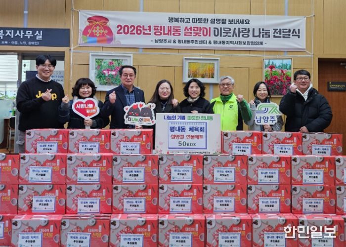 이태원 평내동장은 “설 명절을 앞두고 관내 취약계층들이 따뜻한 명절을 보낼 수 있도록 나눔을 실천해주신 평내동 체육회에 감사드린다”며 “앞으로도 민관이 긴밀히 협력해 촘촘한 복지안전망을 만들어가겠다”고 밝혔다.
