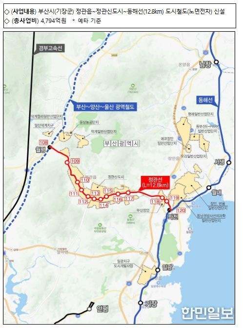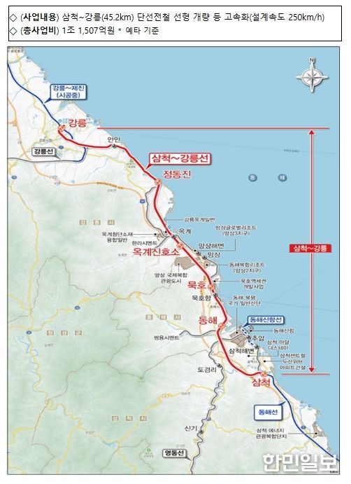 한민일보 서울포커스 임철현 기자 | 국토교통부는 2월 12일 동해선 삼척-강릉 철도 고속화 사업과 부산도시철도 정관선 건설사업이 사업 타당성을 확보하여 예비타당성조사를 통과했다고 밝혔다.