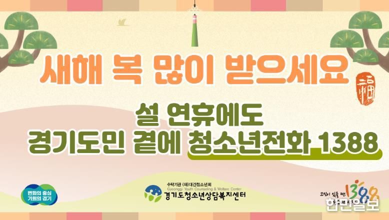 한민일보 서울포커스 김윤이 기자 | 경기도는 설 당일을 포함해 14~18일 연휴 기간에도 위기 청소년 심리 상담 서비스 ‘청소년전화1388’을 24시간 운영한다.