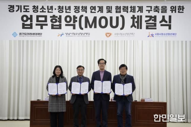 한민일보 서울포커스 유현민 기자 | (재)시흥시청소년청년재단은 지난 2월 12일 경기도청 옛청사 신관 4층 대회의실에서 경기도미래세대재단, 수원시청소년청년재단, 성남시청소년청년재단과 함께 ‘청소년ㆍ청년 정책 연계 및 협력체계 구축’을 위한 업무협약을 체결했다.